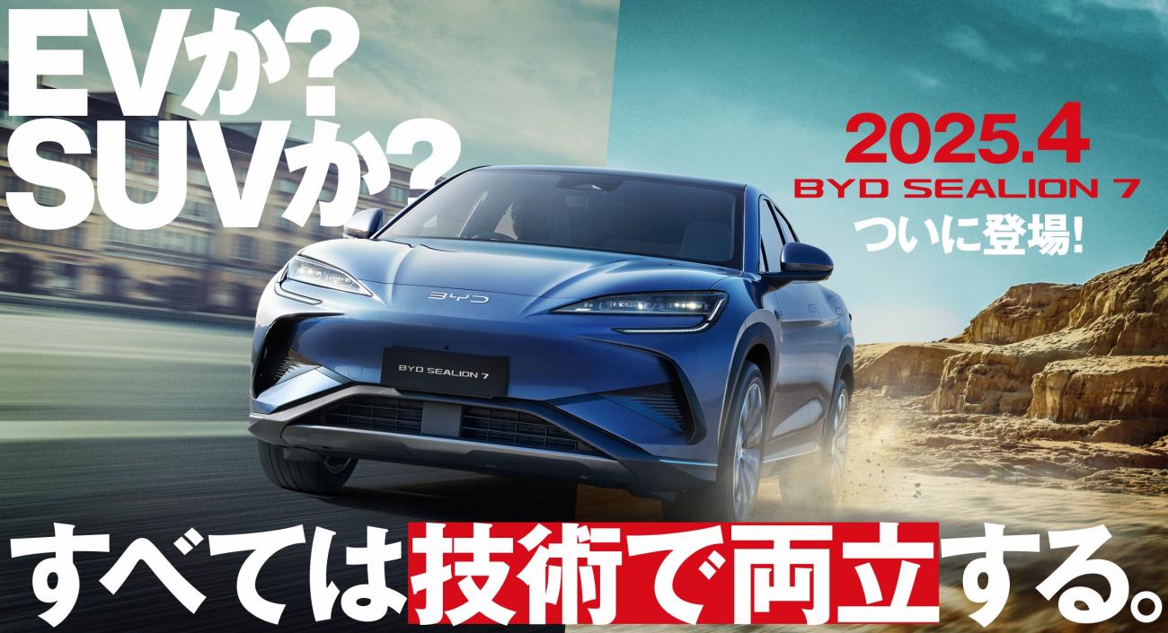 BYD AUTO 静岡はSEALION7を展示し、電気供給のデモをいたします。